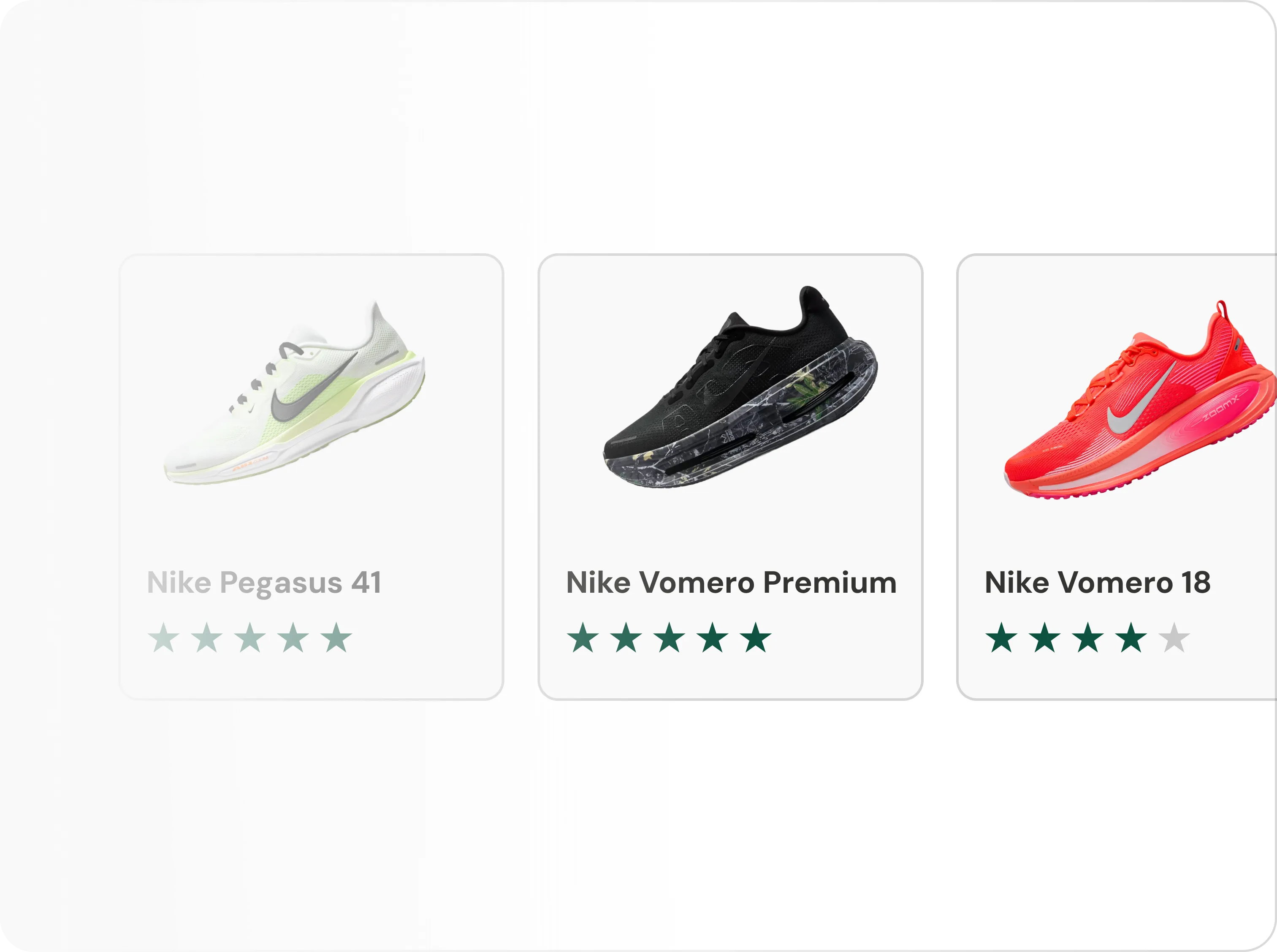 Drop your URL. We crawl your entire catalog instantly — no setup, no install, no Shopify required. Any e-commerce platform.